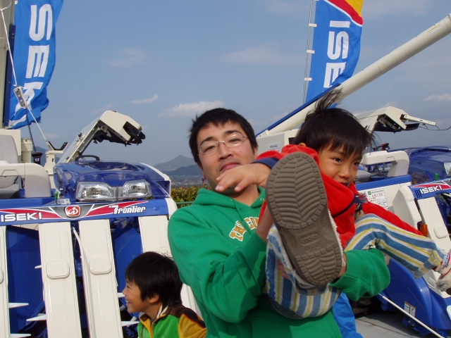 富ちゃんも田植機の実演です。顔が緊張感に溢れてました。