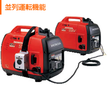 EU28is、EU24i、EU16iは並列運転接続キット*、EU9iは並列運転接続コード*の接続で、簡単に並列運転が可能。 大出力電源の携帯に対応します。1台ずつ運んで連結させるなど、必要に応じてさまざまな使用が可能です。 *オプションとなります。 |