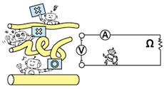電線を伝わってゆく電気の流れを電流と呼びます。 |
